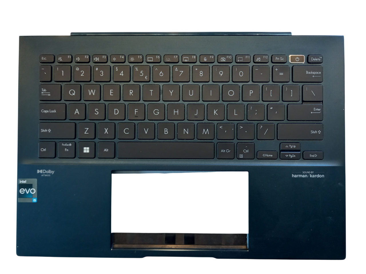 Technical condition: Palmrest in very good / ideal condition, has a few spots of barely visible paint chips the size of a pin head from a pin .. Keyboard, touchpad, backlight fully functional. QWERTY layout. Original palmrest, comes from disassembly. Includes POWER button with FPC tape.