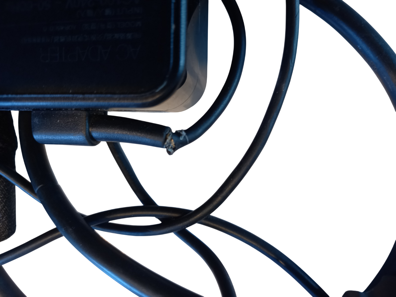 Stan: Zasilacz sprzedawany jako uszkodzony, posiada uszkodzoną izolację od strony wtyku do laptopa. Zasilacz działa ale wymaga zaizolowania.