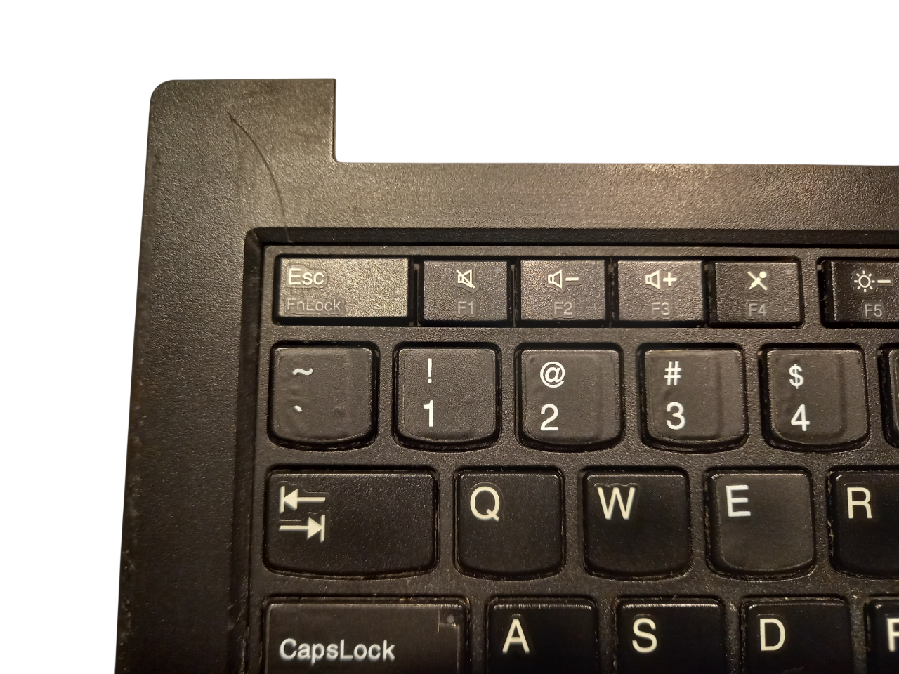 Posiada widoczne obtarcia na krawędziach oraz jedną dużą rysę w okolicy klawisza ESC.