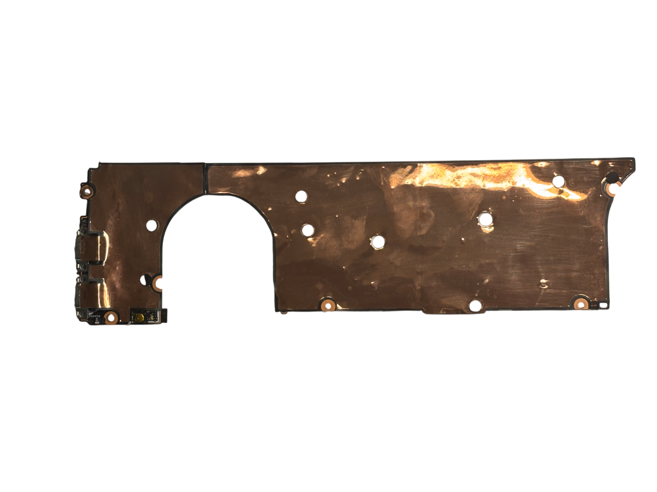 Stan techniczny : Płyta główna normalnie pracuje na zewnętrznym monitorze. Posiada uszkodzone lekko gniazdo taśmy matrycy, nie był testowany pod kątem pracy na matrycy.