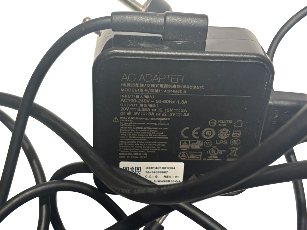 Przedmiotem sprzedaży jest zasilacz ADP-65SD B.